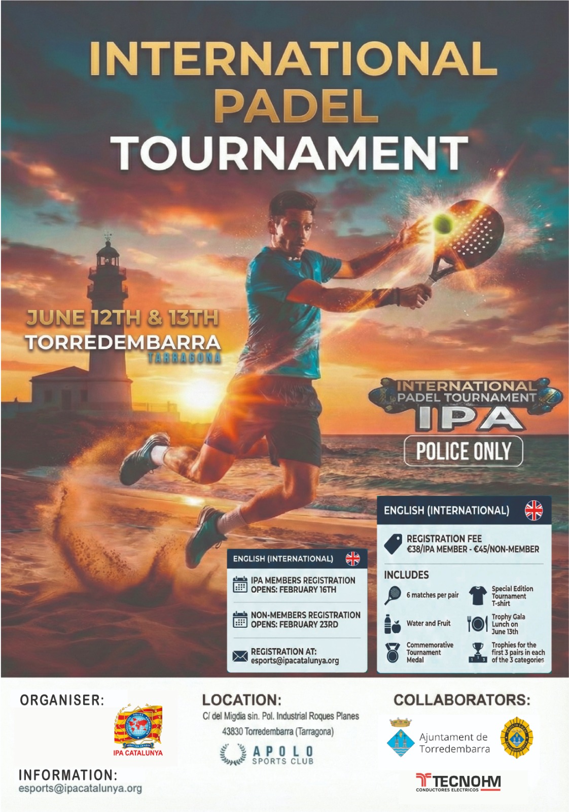 Information can also be found on our international website: IPA Spain Catalunya Padel Tournament - IPA - International Police Association